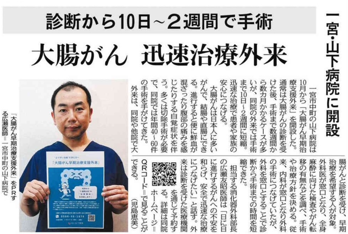 記事では、診断から10日〜2週間で手術が可能な体制や、地域の皆さまに安心して治療を受けていただくための取り組みについて取り上げていただいています。