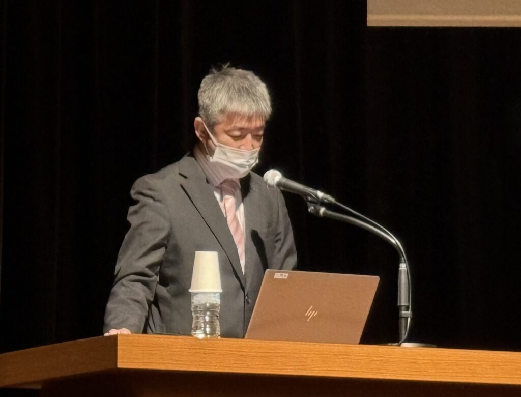 最初の講演は、消化器内科部長 小林健一先生による「大腸がんはこうして見つける・こうして治す」でした。大腸がんは初期症状が出にくいものの、早期に発見すれば治る可能性が高い病気であり、定期的な便潜血検査の重要性や、陽性の場合には放置せず大腸内視鏡検査などの精密検査を受けることの大切さを説明されました。また、早期発見であれば内視鏡による治療が可能な場合も多く、その具体的な治療方法についても、わかりやすく紹介されました。