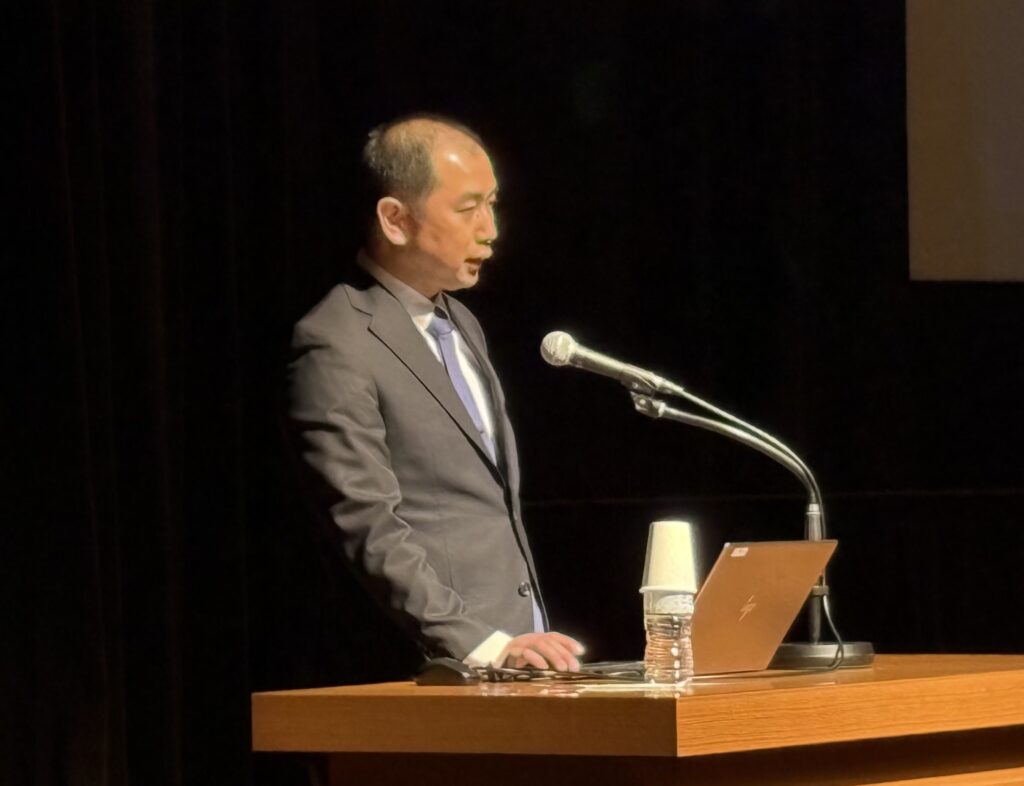 続いて、消化器外科部長 兼 尾張そけいヘルニアセンター所長 廣瀬友昭先生の「大腸がん手術、知れば安心 ~手術がこわいをなくす話~」では、手術への不安は「よく知らないこと」から生まれるとし、がんの広がり方や再発を防ぐ手術方法、最新機器を用いた手術、麻酔科医や看護師を含めたチーム医療の体制などを実際の手術動画を交えて紹介されました。仕組みを正しく知ることで不安は安心へと変わること、そして手術の目的はがんを取り除くことではなく、患者さんが再び日常生活を取り戻すことにあると力強く語られました。