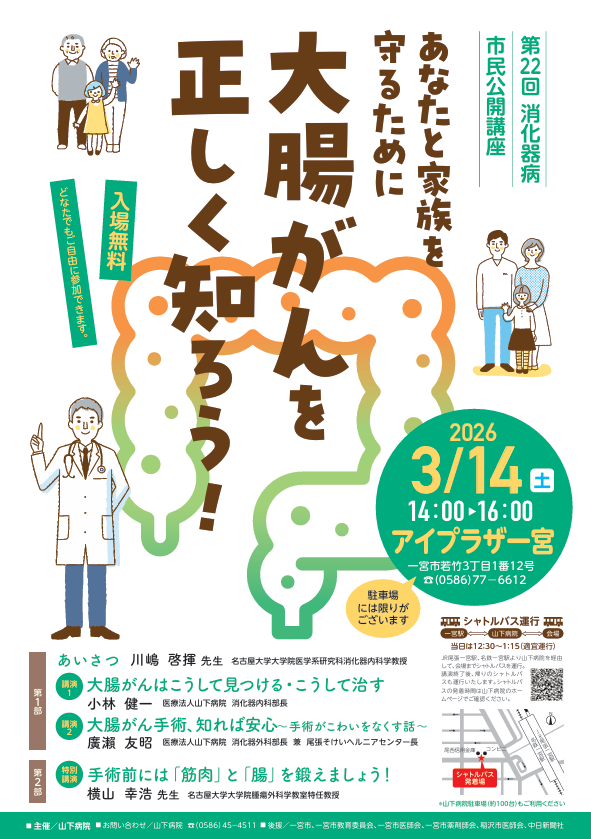 2026年 3/14(土)第22回 消化器病市民公開講座を開催します!